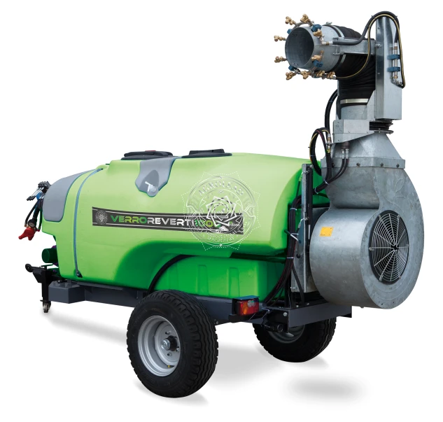 Verro Reverti Trailed Type Robothead Air Blast Sprayers available with turbine ‘’D.A.’’ is equipped with the exclusive omni-direction cannon head ‘’Robot’’ that has been projected and produced with great success of Agrolead. Thanks to its high flexibility it could be oriented in all directions, either vertical or horizontal. This cannon head allows the direct treatment to many cultivation in open fields cereal, vegetables,tobacco) and also to plants (parks,ornamental plants etc.) Thanks to the vortex air flow , it is possible to get an excellent moment of the leaves which allows the chemicals a good penetration in all cultivations. All the movements of the cannon head are also dynamic, absolutely reliable, without any need of maintenance. The Reverti model air blast sprayers has been realized for middle-high cultivations in open fields or out of fields in greenhouses.The cannon head could rotate 180˚ on horizontal line, thanks to the hydraulic motor (optional) or manually. ’Overland’ is provided with a smart high adjustment to be adapted to the different high of treatment.