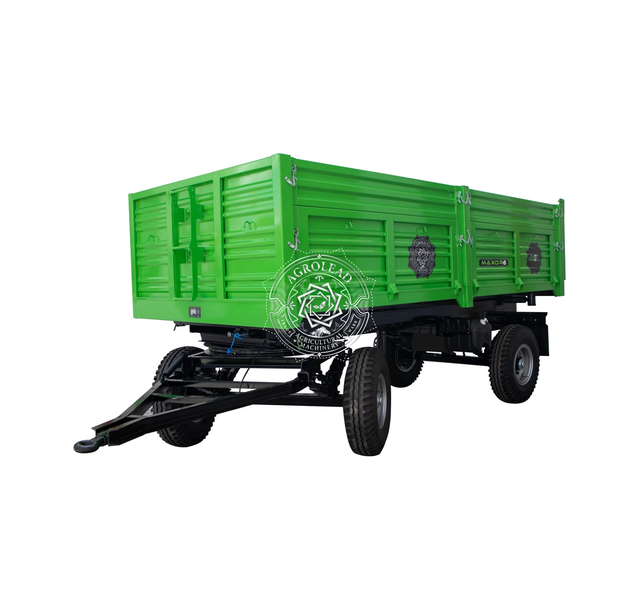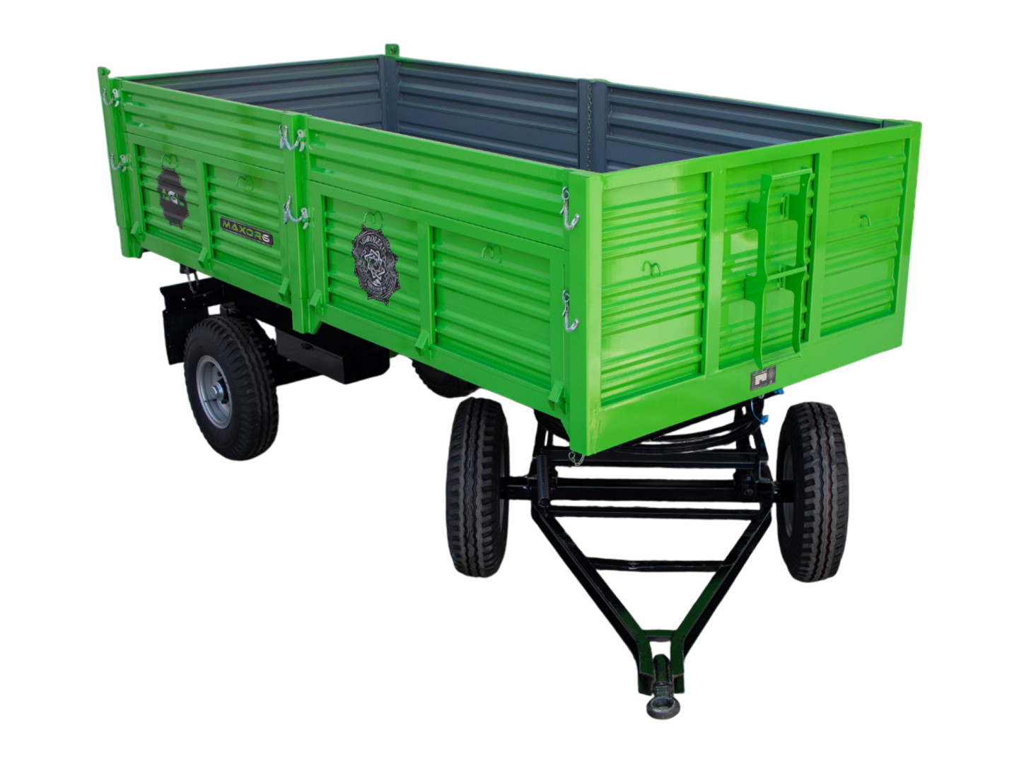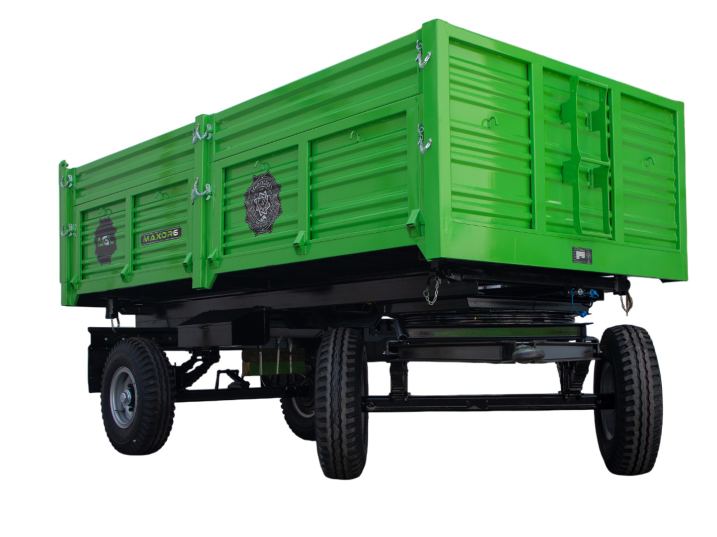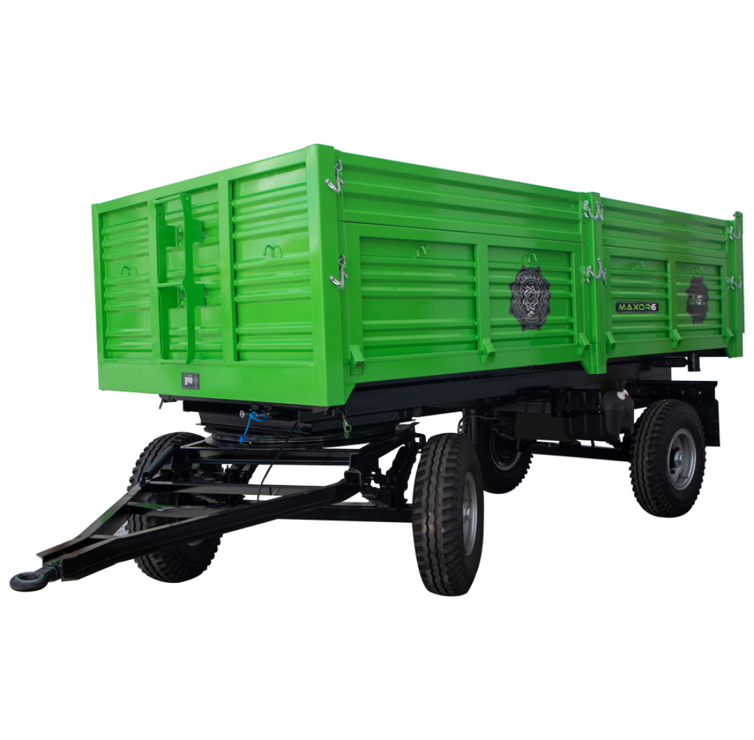 Maxor prikolice sa dvostrukim osovinama namenjene su za transport raznih materijala, posebno poljoprivrednih proizvoda gde je potrebna precizna nepropusnost. Maxor prikolice se proizvode sa standardnim zadnjim kipovanjem i opremljene su hidrauličnim kočnim sistemom. Takođe, nudimo opcije kao što su 3-strano kipovanje i vazdušni kočioni sistem. Nosivost prikolica se kreće od 4 tone do 10 tona.